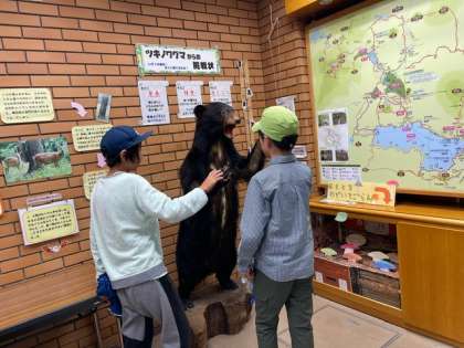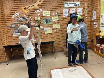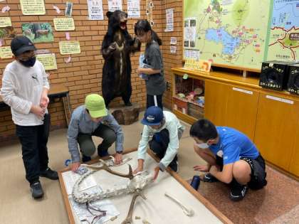 シカやクマの剥製なども実際に触れることができ、大きさや手触りなどを実感していました。
