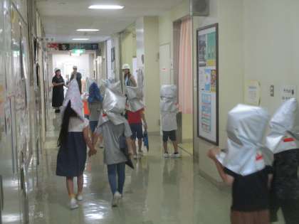 今日は、避難訓練を行いました。