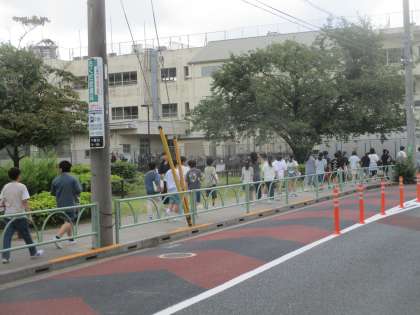 近隣の施設から出火し、校庭避難が不可能という想定で、千歳中学校への避難になりました。