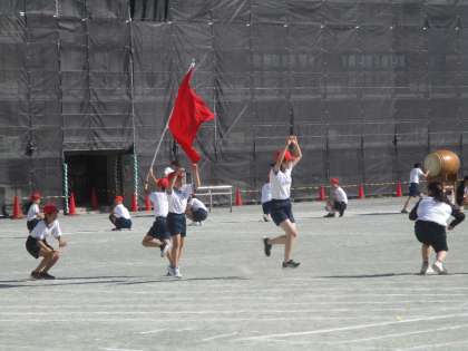 中休みや昼休みは、リレーや応援合戦の練習です。