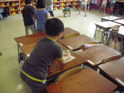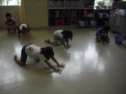 塚戸小では今年度清掃活動の内容を見直しました。清掃活動中は音楽が流れ、みんなが黙々と清掃に取り組みます。清掃活動を通して自分自身の心と向き合い、心と環境を同時に美しく磨いていくことをねらいとしています。子どもたちは真剣に一生懸命取り組んでいます。