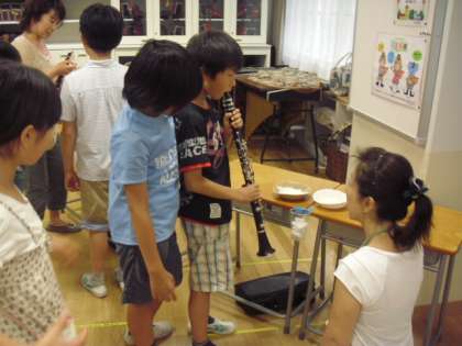音楽ボランティアサークルおたまじゃくしの皆様にご協力いただき講師をお招きし、4年生が木管楽器の体験学習を行いました。