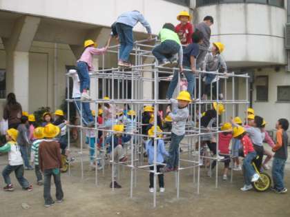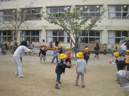 1年生にとって初めての休み時間の遊びでした。他の学年の中で、1年生の黄色の帽子が目立ちました。学校での楽しみが益々増えていきます。