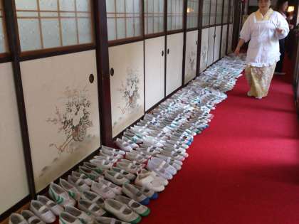 大広間の前に整然と並べられた上履き。さすが6年生です。