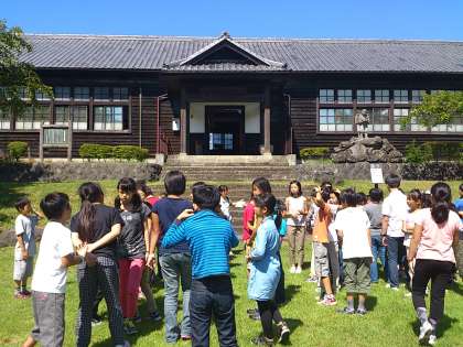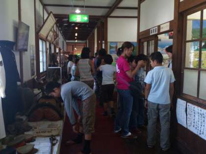 川場小学校の古い校舎を利用した資料館です。昔の資料が展示されています。天気もよく、東京と変わらない暑さです。