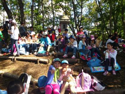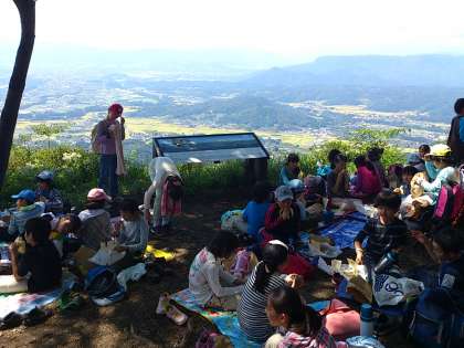 困難を乗り越え、やっと山頂に到着しました。素晴らしい景色を眺めながら、お弁当を食べました。