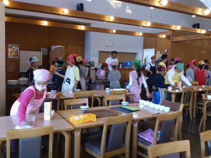 食事係のてきぱきとした仕事ぶりで、あっという間に準備ができました。