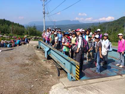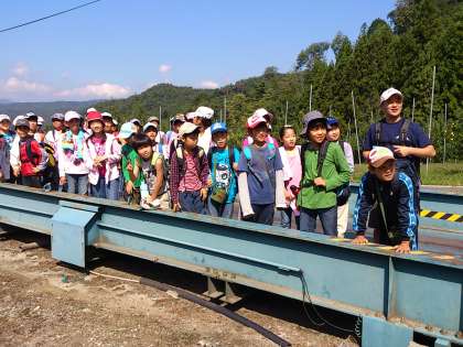 これは大きな重量計です。車の積載荷物の重さをはかります。グラスごとにのって、全体の重さをはかりました。