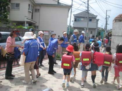 今日は、全校、同時時刻での下校です。毎日、登下校の安全を見守ってくれている塚戸安全パトロール隊の合同の活動日です。子どもたちも、しっかりあいさつをしながら、自分達の安全を守ってくださるパトロール隊の方々に、感謝の気持ちを表していました。