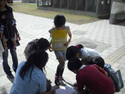2年生の子どもたちはグループに分かれて、小学校周辺の町へ出かけました。