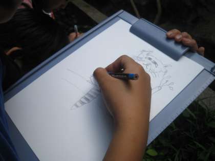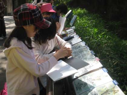 お弁当をグループで仲良く食べて、好きな動物のスケッチをしました。
