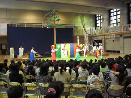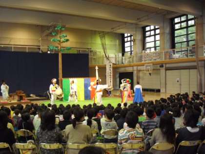 今年の演劇鑑賞教室は、オペレッタ劇団ともしびの皆さんをお招きし、「金剛山のトラたいじ」を鑑賞しました。迫力いっぱいの劇に子どもたちは大喜びでした。