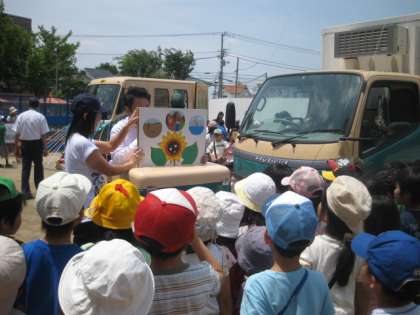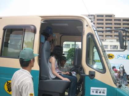運転席に乗って、死角を確認しました。紙芝居も見ました。