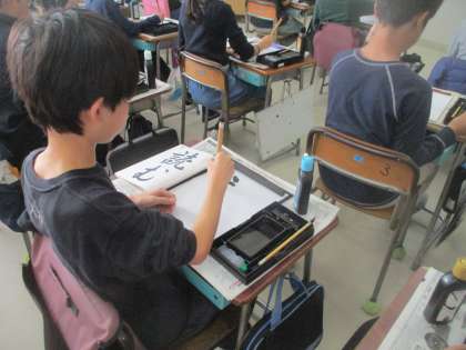 今日の授業では、書写のクラスやタブレットを使っているクラス、様々なツールを使って学習を行っていました。