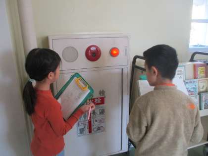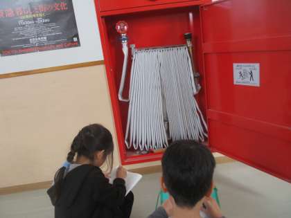 学校内の消防設備を探す取り組みでは、校舎内を回りながら、いろいろな