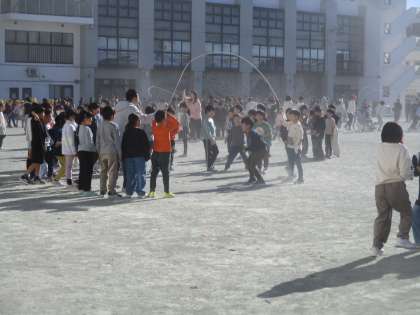 体育の授業でも短縄を跳んでいて、みんな縄跳びに夢中になっています。