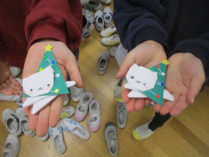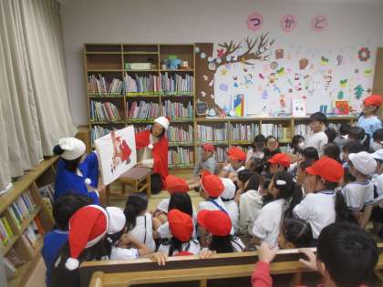 中休みに図書室で、どんぐりのクリスマス読み聞かせが行われました。