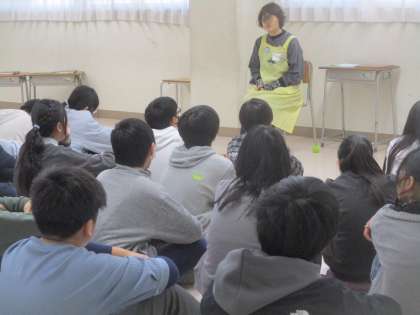 クラスごとに1〜5校時に分かれ真剣にお話しを聞きました。