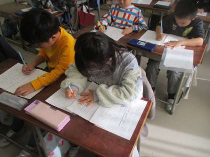 手本を真剣に見て書いていたので、緊張感が伝わってきました。