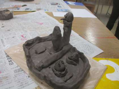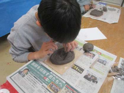 5年生は、粘土を使った焼き物「水の器」に取り組み、自分の描いた作品に仕上げるよう