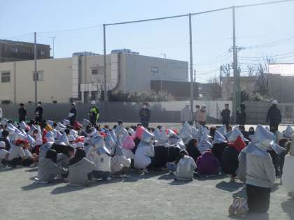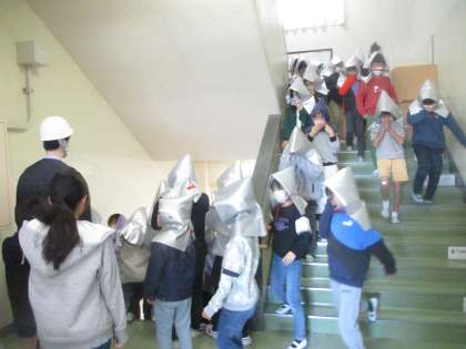 今日は、避難訓練(予告なし)がありました。中休みに火災が発生した設定です。子どもたちは、突然の火災ベルにも落ち着いて対応していましまた。冷静に避難することができ、日頃に訓練の成果が出ていました。