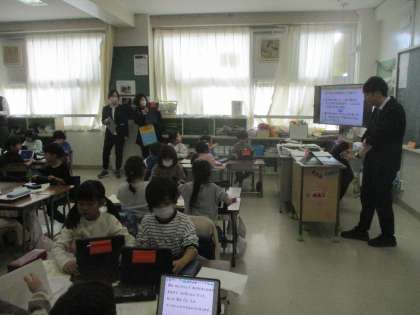 1年生は、まとめたことを伝え合うために「どうぶつの赤ちゃんしょうかいカード」を作り、4年生は、説明文を要約する授業に取り組みました。武蔵野教育研究所所長 細川 太輔先生にご指導いただきました。