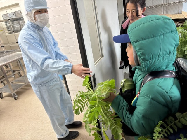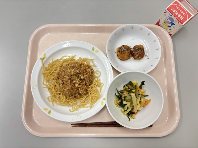 本日の給食ですが、3年生が育てた「大蔵大根」を使って海藻サラダを作りました。