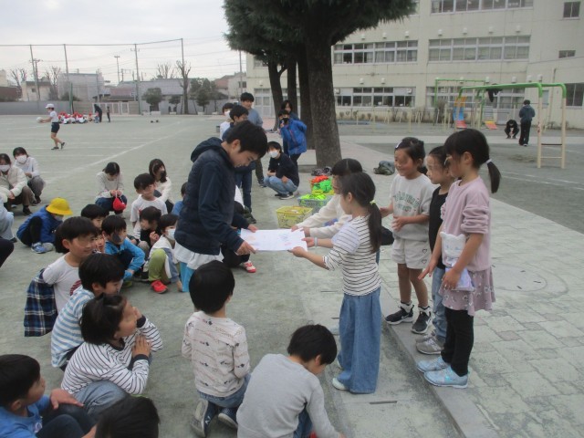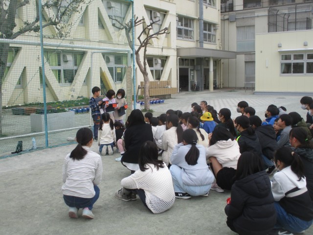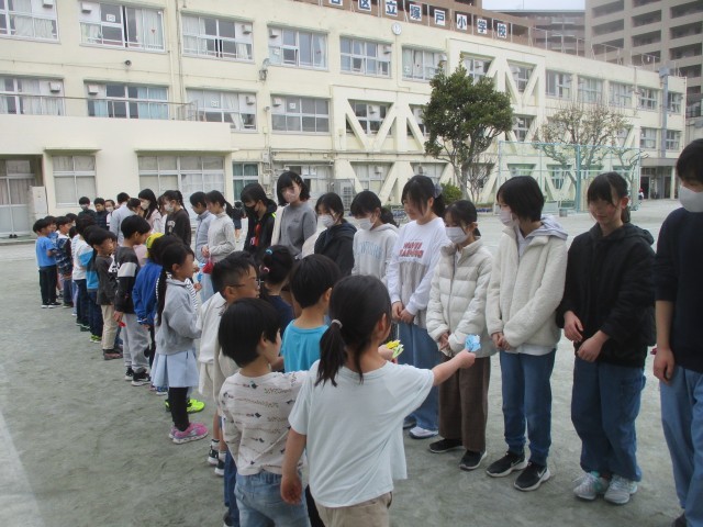 1年生は、あと少しで卒業していく6年生に感謝の気持ちを込めて言葉を伝えたり、いっしょに遊んだりして