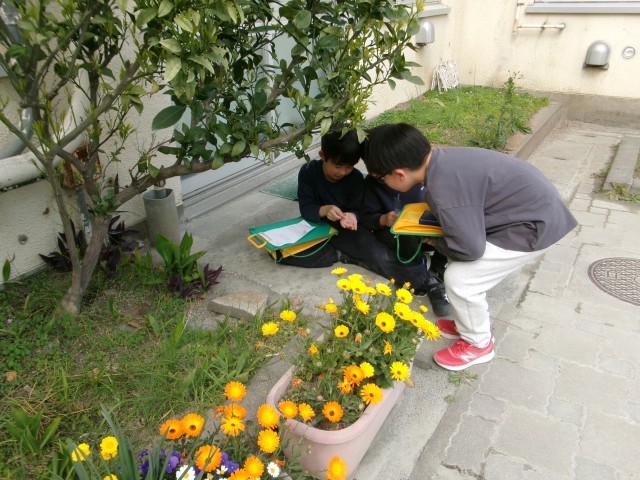 「パンジーの花がきれいに咲いてるよ。」「虫がいたよ。」など教えてくれました。