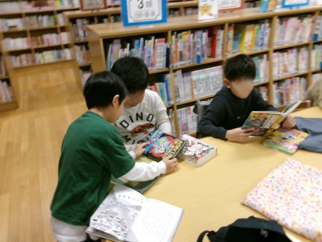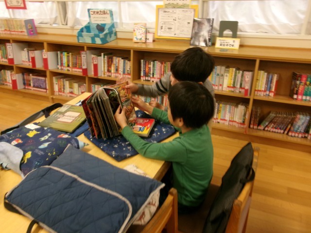 2年生が図書館で読書をしていました。みんな集中して本を読んでいました。友達に自分のお気に入りの本を紹介したり、一緒に本を探したりする場面が見られました。みんな図書室が大好きです。