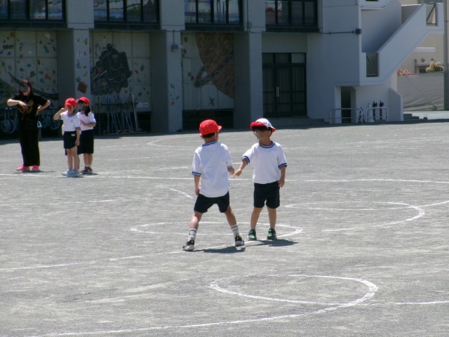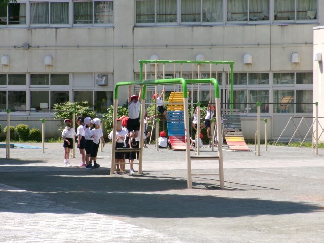 体育では、「どんじゃんけん」でゲームを楽しんだり、雲梯やジャングルジムを使って、運動を楽しんでしました。