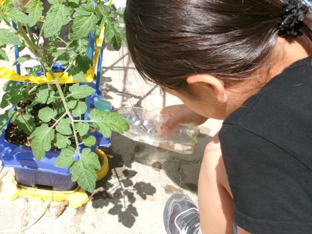 今日は、よい天気だったので、急いで水をあげる子や葉や茎の様子を一生懸命に観察して、
