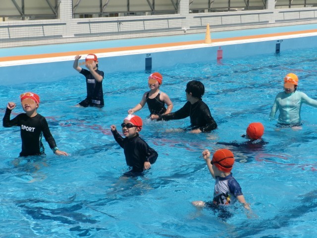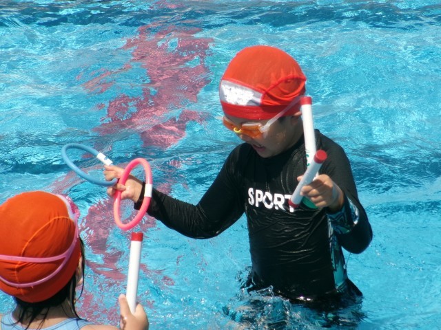 水慣れの後、ダンスや宝探し、水中鬼ごっこをして楽しみました。