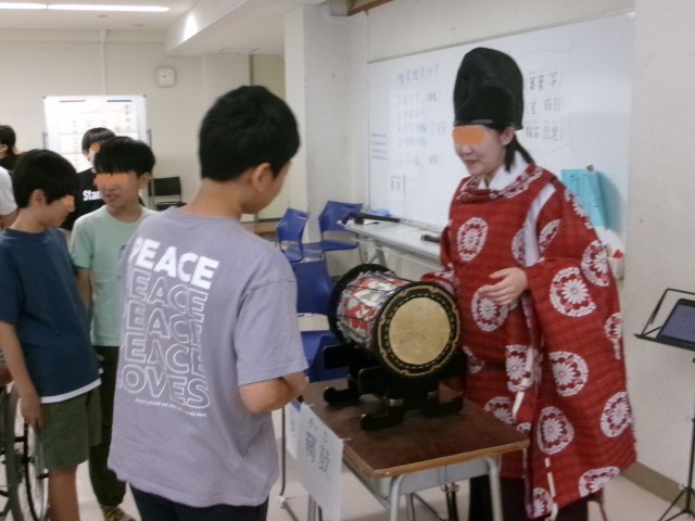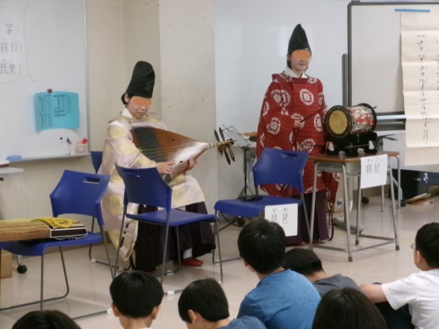 今日は、6年生対象に音楽サークル「おたまじゃくし」による「雅楽」体験が行われました。