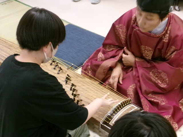 篳篥(ひちりき)、箏(こと)、笙(しょう)、鞨鼓(かっこ)、龍笛(りゅうてき)、琵琶(びわ)の演奏が行われ、