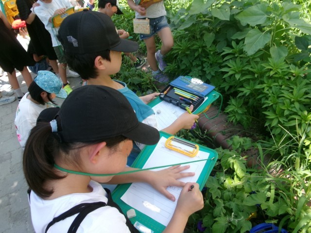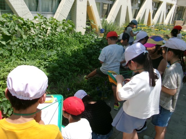 3年生は、ホウセンカの観察を行っていました。あっという間に大きくなり、ホウセンカの生長に驚いていました。
