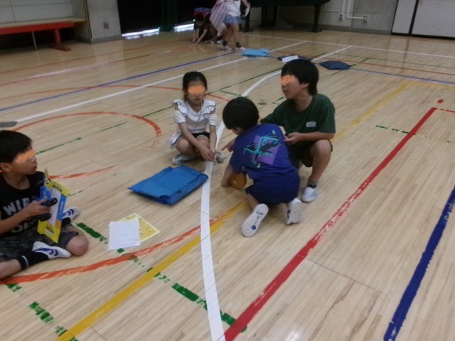 今日は、体育館で班ごとにゴムの力の実験を行いました。