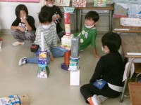 1年生の算数「かたちあそび」です。身の回りにある箱を使って、いろいろなかたちの特...