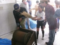 5年生の脱穀体験が行われました。上祖師谷郷土研究会、学校運営委員、学校コーディネ...