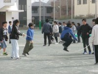 中休みの「元気アップタイム」の様子です。各クラスが校庭に出て、長縄の記録を出すた...