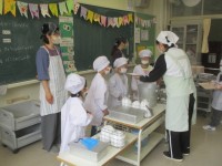 今日から、1年生は給食が始まりました。おひさまボランティアのみなさんがお手伝いし...