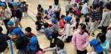 1年生にとって、塚戸小学校初めての運動会。 青と黄色のポンポンをもって、げんきい...
