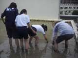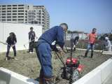 土曜授業後の午後、上祖師谷郷土研究会と学校運営委員会の皆様により、屋上田んぼの整...