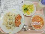 今日は、学校給食週間1日目。 雑穀ごはん、牛乳、鮭の塩焼き、シャキシャキ野菜、さ...