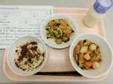 今日は、ごはん、牛乳、飛び魚のメンチカツ、野菜のひとしお、なめこのみそ汁です。 ...
