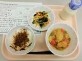 今日は、ごはん、牛乳、おかかふりかけ、肉じゃがうま煮、和風サラダです。