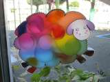 3年生の図工で「光サンドイッチ」に取り組んでいます。7色の色セロハンを表と裏側に...