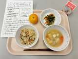 【11月18日の給食】 *鶏飯 *磯和え *じゃがいものみそ汁 *果物(みかん)...