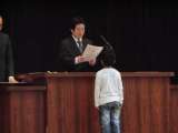 今日は修了式。1年生から5年生までが参加し、各クラスの代表児童が校長先生から修了...