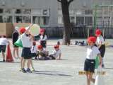 2年生の体育を参観しました。今日はまるいバトンを使って折り返しのリレーを行ったり...